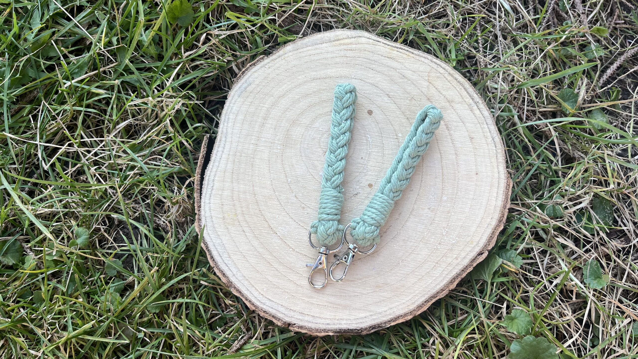 Jemná, ale pevná ručně pletená klíčenka vyrobená z kvalitního provázku na macramé pletení.
